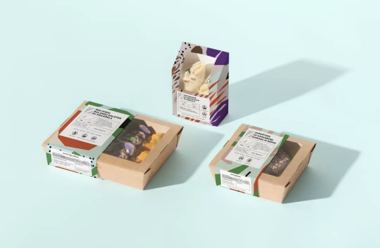 這是一家輕食店,該輕食包裝采用牛皮紙的紙質鏤空設計,同時搭配清新明亮的顏色;略顯“抽象”的紋理圖案設計,代表著各種健康食材的成分。在凸顯該產品的品牌理念和屬性特點之外,也使該包裝更加引人注目。