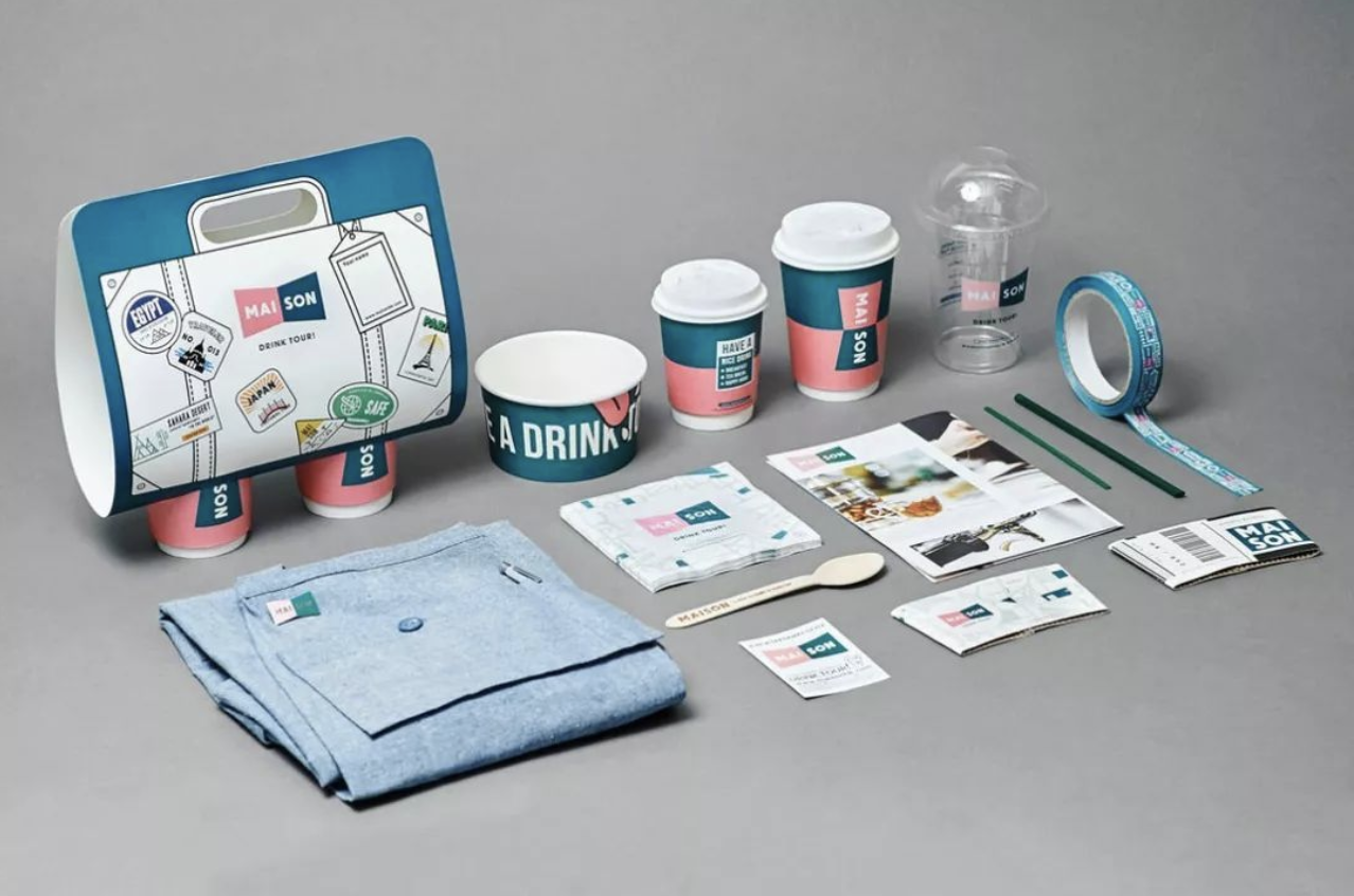 外賣包裝以品牌標準色為主線進行延伸設計,融入了很多年輕時尚的元素,里面不乏色塊拼接、招貼圖標等概念設計,時尚“有型”。